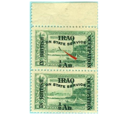 在伊拉克王国成为独立的主权国家以前,长期遭受土耳其奥斯曼帝国的统治。第一次世界大战暴发后,来自印度的英国远征军占领了这片土地。在英占时期的1917年至1920年,英国占领区邮票使用在土耳其奥斯曼帝国发行的邮票上进行加盖改值,邮资面值采用印度通用货币单位卢比(Rs)和安尼(An),其中“巴格达发行票”加盖“IN BRITISH OCCUPATION/BAGHDAD”,“伊拉克发行票”加盖“IN BRITISH OCCUPATION/IRAQ”,还有一种是“摩苏尔发行票”加盖“POSTAGE/I.E.F.’D’”。
