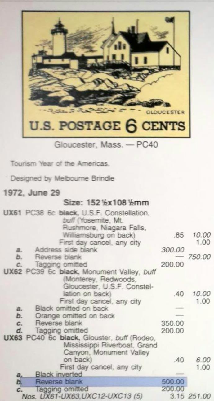 我的五框《灯塔》专题邮集并没有展示上述2种美国灯塔邮资片。不过,最近收获到东角灯塔邮资图那枚背面完全漏印的邮资片(封面图),该邮资片背面应有4个旅游景观及文字(图3)。