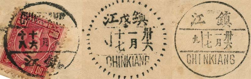 此枚镇江本埠实寄封,看似不起眼,但是,在一枚封上同时盖销了三种不同直径、不同戳式的邮政日戳,却颇为少见,是研究民国时期镇江邮戳邮史的上佳邮品。