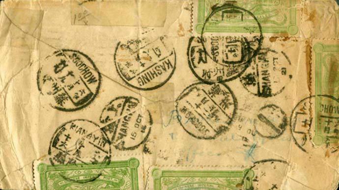 如图所示,为2016年7月20日举行的台湾远东拍卖公司夏季拍卖上的第1677号拍品,是一件民国六年由美国进口邮票,该封经于1917年10月15日经上海寄中国江阴县。由于信封边缘破损,由江阴县邮局补贴前清代封票4枚封固信封,销江阴县六年十月十六日英汉文腰框戳。由于收件人已搬移至苏州医院,固该封由江阴经嘉兴府改寄苏州,销有嘉兴府六月十八日过路戳及数枚苏州六年十月二十日到达戳。