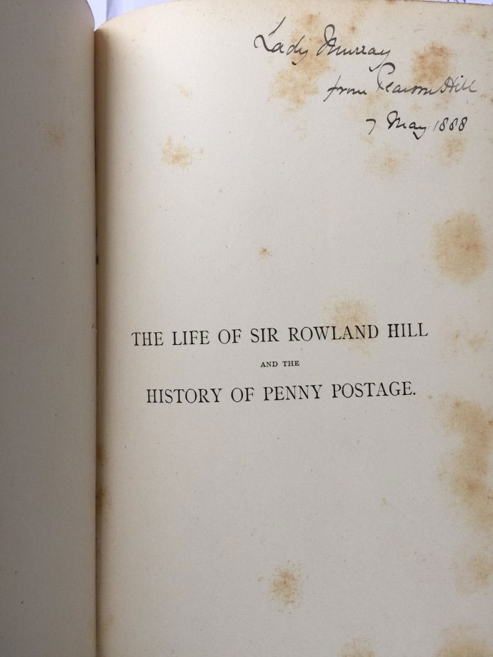 此书由邮票之父及其侄子撰写。书中有希尔的儿子Pearson Hill签名,日期为1888年5月7日。另外,Pearson还是世界上第一台邮戳机的发明人。