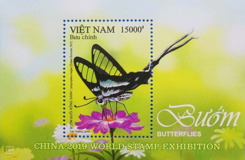 越南邮政以蝴蝶邮票为主题,发售邮展小型张2种和个性化版票1种,小型张分有齿和无齿,面值均为15000越南盾(约合3.37元人民币),其中有齿小型张在武汉邮展售8元人民币,小版张8枚邮票总面值32000越南盾(约合9.5元人民币)在武汉邮展售40元人民币。