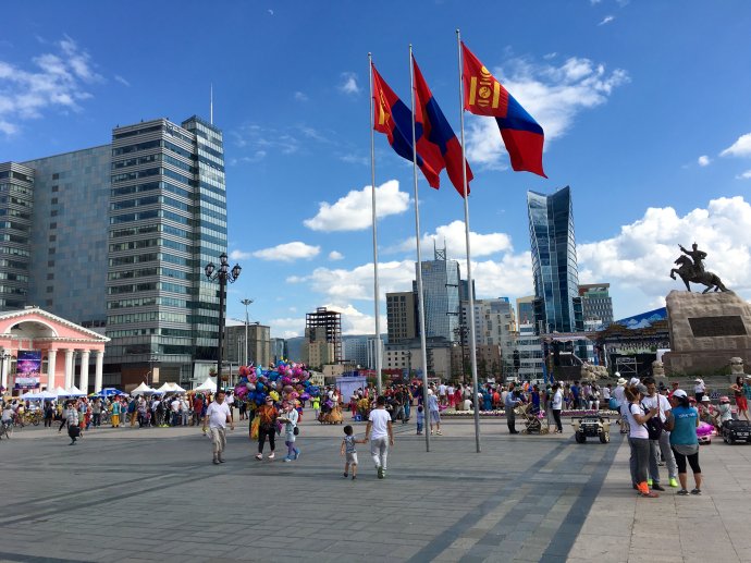 蒙古国首都乌兰巴托比想象中要繁华,整座城市的中心就是成吉思汗广场了。这座广场四周有蒙古的各种高大上部门与建筑,每当有外宾访问时欢迎仪式也安排在此。