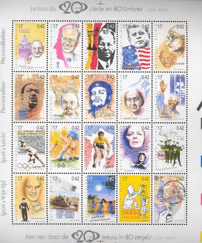 比利时在1999年发行的《80枚邮票看二十世纪》(Le tour du 20 siecle en 80 timbres)中其中一枚有哲古华拉头像。